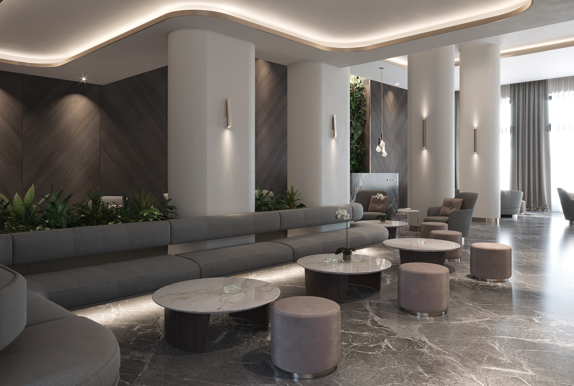 Architectural design of Lobby and suite rooms.